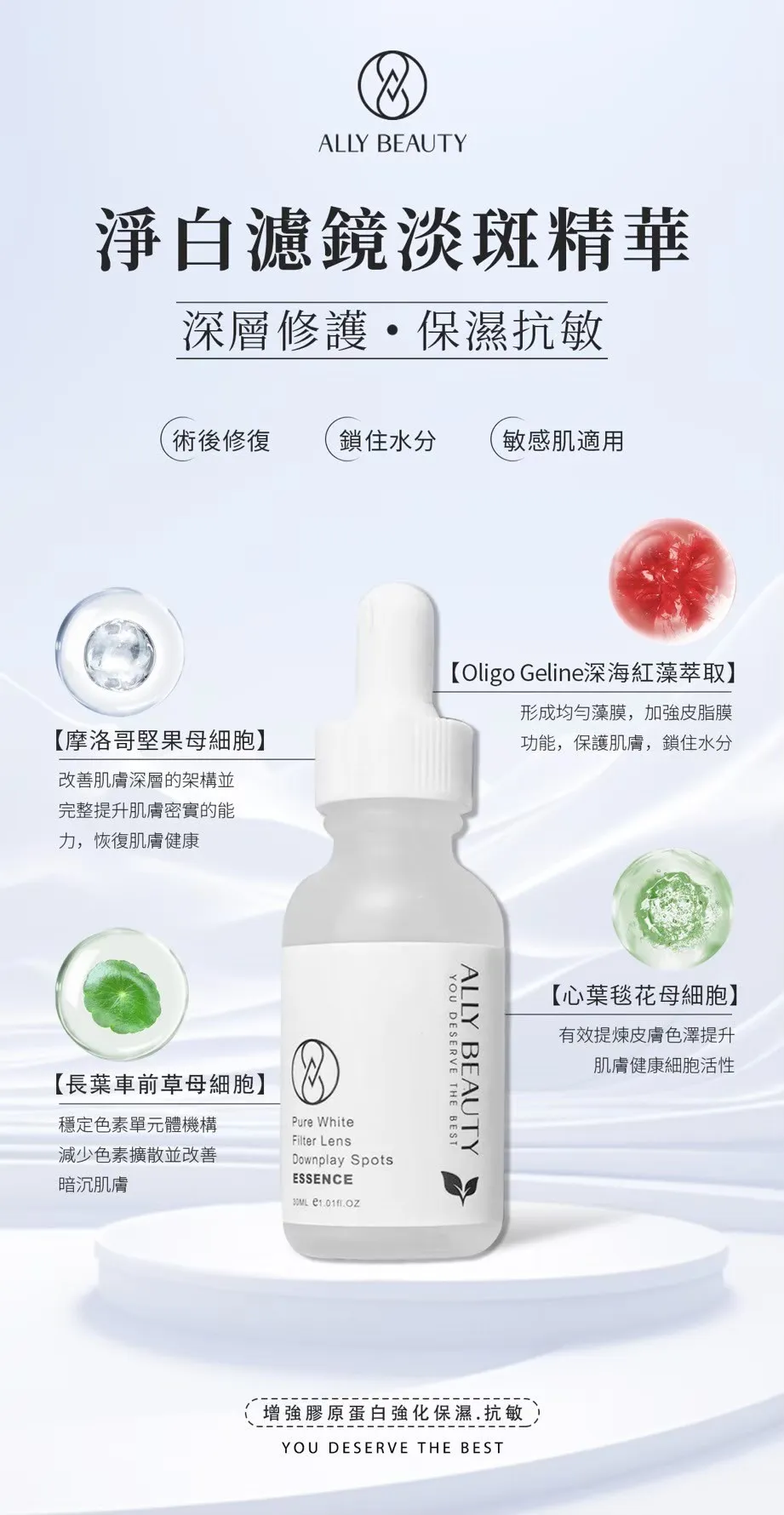 當肌膚開始變薄、鬆弛下垂、 且失去彈性暗沉、不再光滑 。曝曬在陽光下的局部區域,例如臉部與雙手老年性色素斑暗沉開始衰老徵兆顯現,心也開始慌亂,害怕老、害怕醜、害怕變黑,成為熟齡群的共同擔憂。長葉車前草 SENESTEM™ 這支活性成份,藉由輕觸生物體內的小元件,成功展現調節衰老所造成的暗沉、衰老現象,它將大大改善你肌膚的變化,淨白肌膚,改善暗沉,你其實可以過的比現在更亮麗。